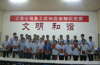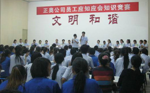 .為了促進(jìn)公司全體一線員工學(xué)習(xí)、掌握崗位應(yīng)知應(yīng)會(huì)知識(shí)和基本的崗位技能、行為規(guī)范,提升一線員工的綜合技能素質(zhì),正奧公司工會(huì)組織生產(chǎn)一線員工,在發(fā)放知識(shí)卡片、進(jìn)行全員書面測(cè)試的基礎(chǔ)上,選拔優(yōu)秀選手于9月14日晚開展了“應(yīng)知應(yīng)會(huì)知識(shí)競(jìng)賽”活動(dòng),本次競(jìng)賽根據(jù)生產(chǎn)工序共選撥7支參賽隊(duì),每隊(duì)由3人組成。通過必答、搶答、觀眾互動(dòng)等形式,根據(jù)各隊(duì)答題得分情況最終產(chǎn)生一、二、三等獎(jiǎng),公司領(lǐng)導(dǎo)為獲獎(jiǎng)選手們頒發(fā)榮譽(yù)證書和獎(jiǎng)金。