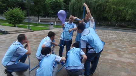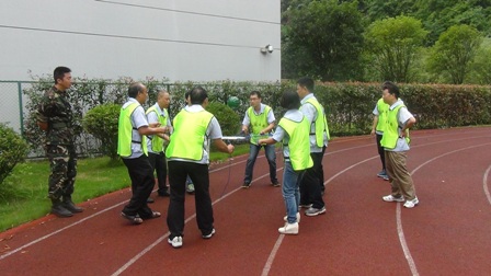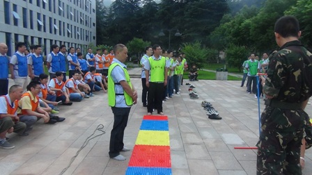 在拓展項(xiàng)目訓(xùn)練中,大家聽從指揮、服從安排,整個(gè)活動在緊張、激烈、歡聲中度過。活動開始,教練把參訓(xùn)人員分成“天藍(lán)色、深藍(lán)色、橙色、紅色、淺綠色、深綠色6支隊(duì)伍。在統(tǒng)一著裝及熱身后,大家便以小隊(duì)為單位投入到緊張的訓(xùn)練課程中。活動包括指壓板、撕名牌、真人CS、呼吸的力量、同心鼓、動力圈等項(xiàng)目,每一項(xiàng)訓(xùn)練,都是一次感動,每一次感動,都帶來一次心靈的震撼。每個(gè)游戲結(jié)束后,大家都對失敗的原因進(jìn)行深刻總結(jié),通過總結(jié)去領(lǐng)悟活動中所蘊(yùn)含的理念和精神。讓大家深刻感受到了溝通、合作、相互激勵(lì)、融洽人際關(guān)系以及尊從團(tuán)隊(duì)規(guī)范的重要性。如:“呼吸的力量”項(xiàng)目需要把各自隊(duì)伍分成 “領(lǐng)導(dǎo)組”“指揮組”和“執(zhí)行組”3個(gè)組。各小組成員各負(fù)其責(zé),由“領(lǐng)導(dǎo)組”成員向“指揮組”成員描述“呼吸機(jī)”的構(gòu)造及制作方法,再由“指揮組”傳達(dá)并指導(dǎo)“執(zhí)行組”動手制作。如何向其他成員描述機(jī)器的構(gòu)造和制作方法,以便耗時(shí)最短最高效的完成“呼吸機(jī)”的制作,考驗(yàn)著大家上傳下達(dá)的語言技巧、溝通的能力和協(xié)作能力。還有在最后進(jìn)行的“動力圈”項(xiàng)目,更是將團(tuán)結(jié)協(xié)作作用發(fā)揮到了極致,所有人圍成圓形,用力將柔軟的繩索向后拉扯,讓繩索變成一條鋼鐵般堅(jiān)硬的繩圈,各自的隊(duì)長在繩子上抱圓走完全程!成功與否,在于對團(tuán)隊(duì)成員信任,這種信任感來源于100%的執(zhí)行力和團(tuán)隊(duì)協(xié)作能力!最終每個(gè)隊(duì)的隊(duì)長安全的走完了全程,活動在“眾人劃槳開大船”的激昂音樂中完滿結(jié)束。 一天的活動,每個(gè)人都有一份收獲、一份感悟。大家高效執(zhí)行、自我挑戰(zhàn)、互助協(xié)作、克難攻堅(jiān),增加了大家對團(tuán)隊(duì)的理解和對自我價(jià)值的衡量。激發(fā)了大家克服了困難、克服了人性的弱點(diǎn),真正的領(lǐng)悟到了團(tuán)隊(duì)力量的強(qiáng)大,只要大家心往一起想、勁往一處使,任何困難和挫折都會被我們踩在腳下、拋在腦后,團(tuán)隊(duì)目標(biāo)也一定會實(shí)現(xiàn)!