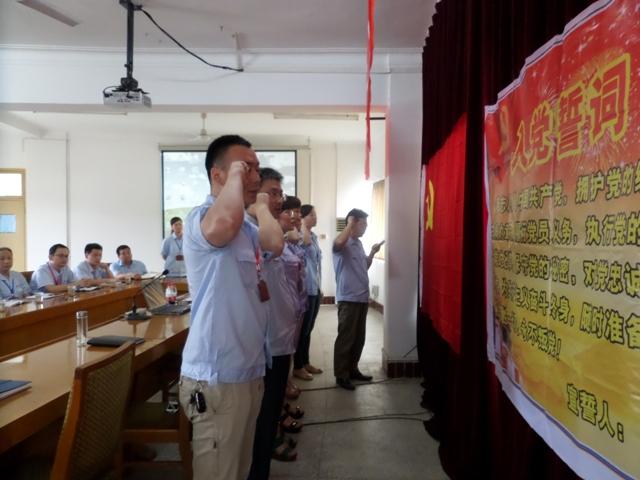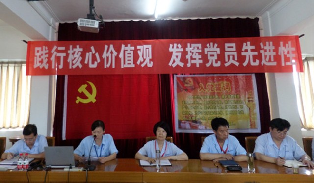 伴著雄渾的國(guó)歌聲,公司所有黨員干部全體起立,向黨旗致禮。隨后公司機(jī)關(guān)黨支部書記王子星宣讀了2013年預(yù)備黨員轉(zhuǎn)正以及接收2014年新預(yù)備黨員的決定。7名新預(yù)備黨員在黨委副書記李應(yīng)濤的領(lǐng)誓下,進(jìn)行了莊嚴(yán)的宣誓。隨著新黨員錚錚誓詞的落地和預(yù)備黨員代表發(fā)言完畢后。公司還特別邀請(qǐng)到十堰黨校黨務(wù)處李教授宣講以“踐行核心價(jià)值觀、發(fā)揮黨員先進(jìn)性”為主題的黨課。